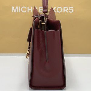 Michael Kors Penelope Large Top Handle Satchel Merlot Multi Color Leather