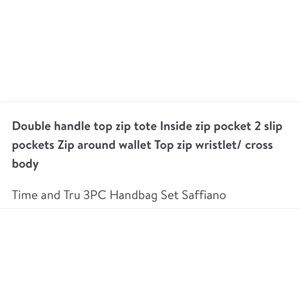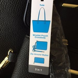 NWT Time & True Saffiano 3 Piece Black HandBag Set