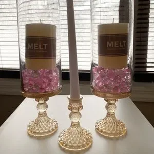 2- 4inch wide vase pillar candle holder with new 3inch wide cylinder candles inside (included)