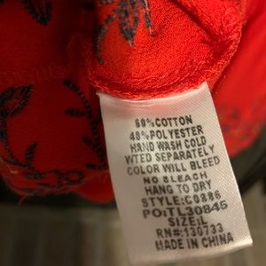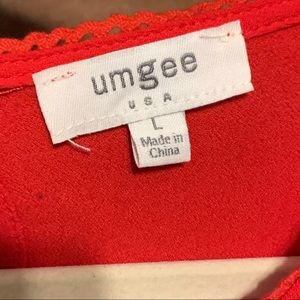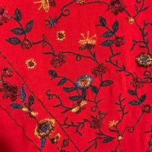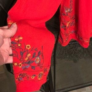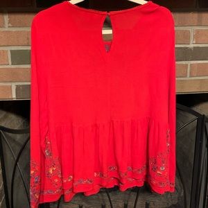 Sz L Boho red embroidered floral details , bell sleeve top. Excellent with no problems. Umgee USA. 27” length. 22” pit to pit. Pit to sleeve end 18”. J Was vibes