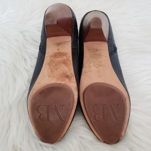 Has interior side zip for ease of dress.Tonal topstitching trims collar. Stacked angled heel. Lightly padded insole; rubber outsole. These shoes are in great shape - gently worn with light signs of wear on the bottom of the shoe and on the heel (see photos). Comes from a non-smoking home.