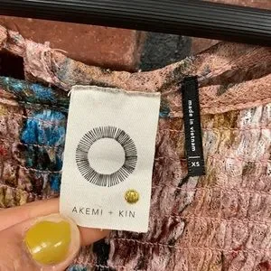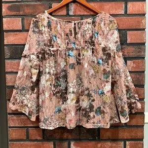 Akemi + Kin Pink Juno Floral Blouse. Light flowy fit with bell sleeves and a keyhole button back.