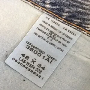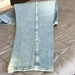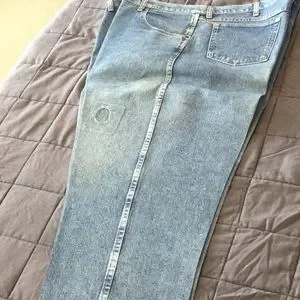 Very well loved pair of jeans ๐. They are size 48 x34. These jeans have stains, fraying and a patch on one leg. I have tried to show all flaws in the pictures. They have been professionally cleaned and heavily starched. Great pair of work jeans.