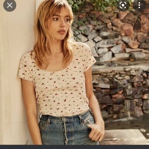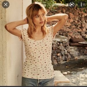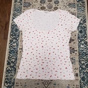 EUC Doen Bridgette Tee in pink strawberry print, size medium. I see no flaws. Such a sweet top, found a large that fits me better 💕