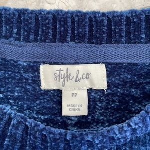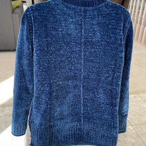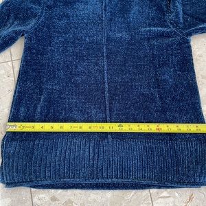 Vibrant blue oversized super soft chenille sweater. See pics for measurements. Size “PP” but fits much looser than this. Split side hem, midline seaming detail on the front and back. Smoke free, pet free house.