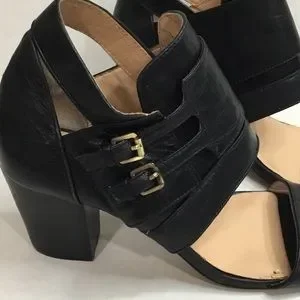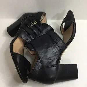 BCBGeneration Black Leather Ankle Strap Heel/Pump