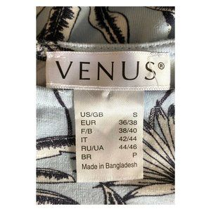 Venus Short Sleeve Round Neck Ruched Floral Pattern Knit Dress Size Small. Beautiful floral pattern light blue rayon blend knit fabric. 45” long, 17.5” armpit to armpit, 15” waist seam to seam, 16” hips seam to seam. Preowned, no signs of wear, adorable dress!