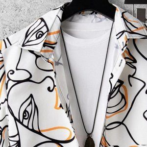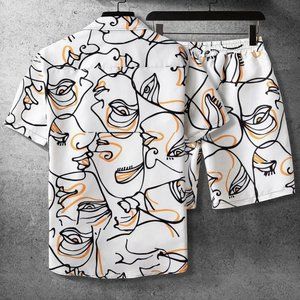 Street Style White Men's Figure Graphic Shirt & Short Set