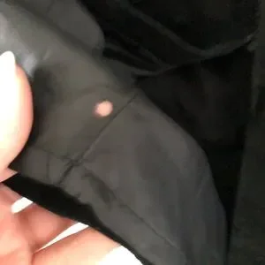 Suede is in excellent condition! Hits below knee. Vent seam very slightly loose for first three stitches, could easily be repaired. Small hole in poly lining near bottom.