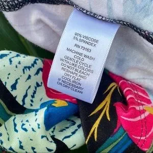 Bright colored floral and palm print dress.