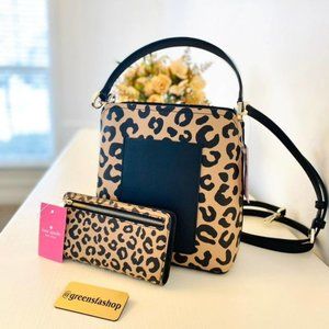 Kate Spade Purse & Wallet Darcy Graphic Leopard Small Bucket Bag Crossbody
