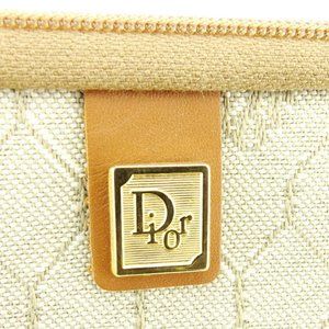 Authentic Dior clutch bag Logo Beige Brown Gold Women Men