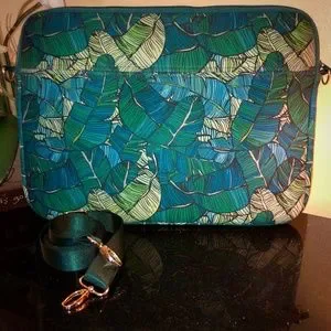 Pretty neat for a nature pattern, it's not too often you get all this neatness in one location! Most excellent match for upcoming summer vibes. Fits up to a 13" laptop, a couple thin files and a few writing instruments. Soft yet protective material which always received compliments. Removable and adjustable strap included. Pre-loved with unnoticeable signs of wear. Carefully stored from October - May for past two years since purchase. No longer working from home so this gem can now make your work days a little more dreamy.