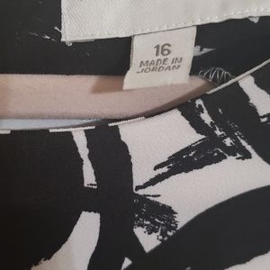 super cute knee length black and white dress with darts along the front and zipper back. xl true to fit.