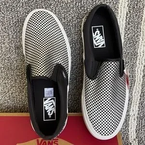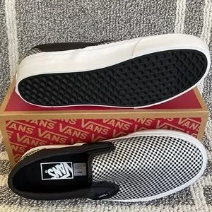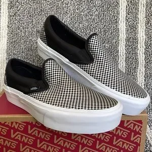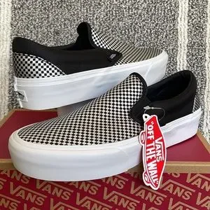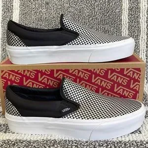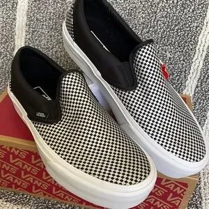 New in the box authentic women’s Vans Classic Slip-On Sparkle Check Black/True White platforms