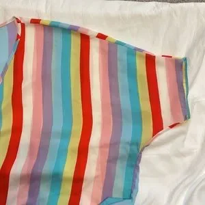 Super colorful sheer oversized top. Would need a cami underneath. There is a run in the fabric shown in picture 2.