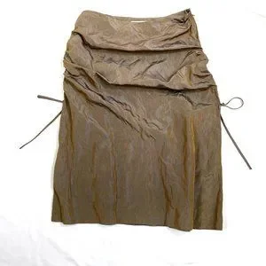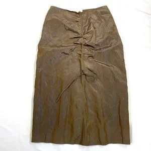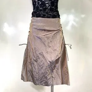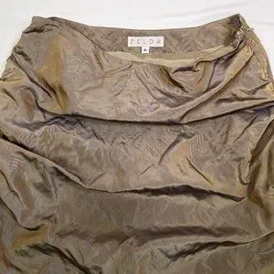 Amazingly beautiful metallic color Zelda Made in USA Taffeta Side Drawstring ruched skirt Drawstring goes up on both sides What a great style! Mint condition, lined. zipper, waisrt 15", adjustable length 34". So much fun, so many ways to wear!