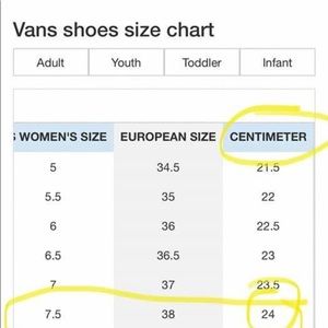 Sorry for the confusion. These are marked as a 6 I have an outside measurement pics that you can compare to your outside measurements. They are kids size 6 which is adult womenβs size 7 1/2.