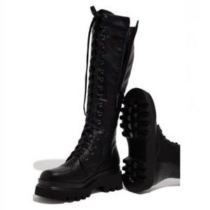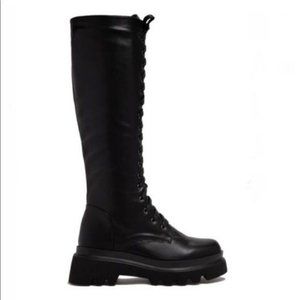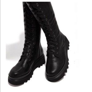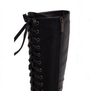 !! NEW !! Knee High Lack Up Combat Boots with Side Zip in Black