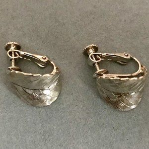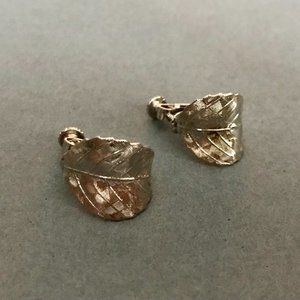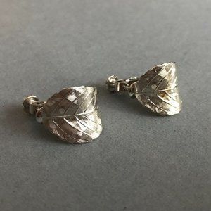 Vintage Napier Silver Curved Leaf Earrings