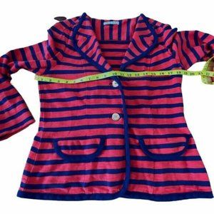 CABI Au Revoir Yacht Club Nautical Knit Blazer M Red Blue Stripe