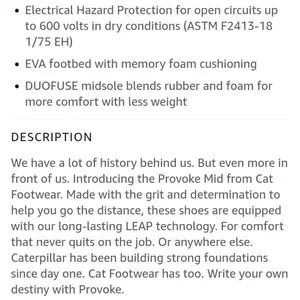 Brand New In the Box Cat Footwear Men's Provoke Mid Waterproof Alloy Toe Construction Boot. The color is Chocolate. There's a description in the last photo and if you have any questions please ask, Thanks!