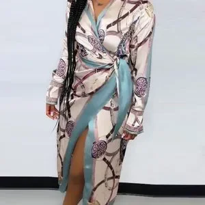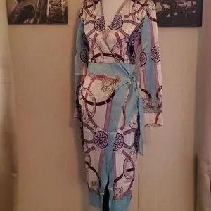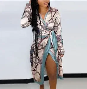 Cute wrap style, tie waist shirt dress is 95% polyester 5% spandex.