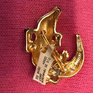 St. John’s vintage gold alligator brooch with black onyx eyes, this brooch is gold plated and signed with designer’s signature logo.