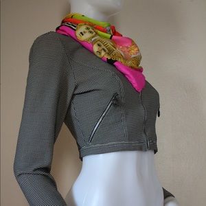 Adorable vintage 1990s little cropped jacket size small with Medusa head zipper pulls.