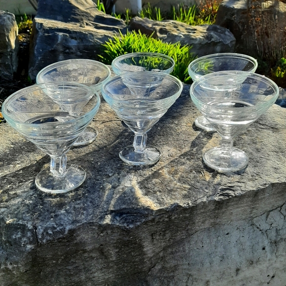 Amazing set of 6 art deco style dessert cups from canadian glassware company la rochere. Gorgeous. Heavy and very well made. Rare find. approx 5"x 5"