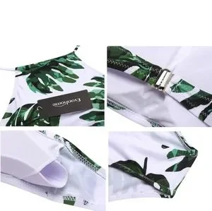 Womens Bathing Suits High Neck Bikini Swimsuits 2 Piece Halter Leaves Printing Bikinis Set