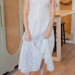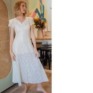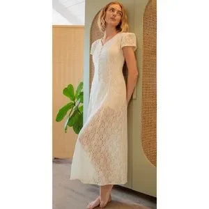 90s Lace Short Sleeve Button Front Ankle Length Dress