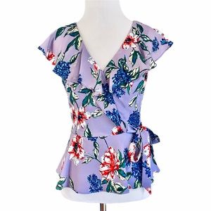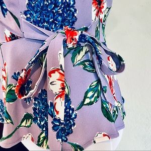 Beautiful peplum blouse is perfect for spring. Soft lavender background accented by bold reds and blues. I will keep it if it doesn't sell quickly. I'm only listing it because my closet is overflowing and I haven't worn it.