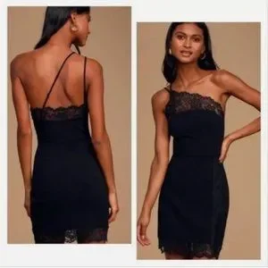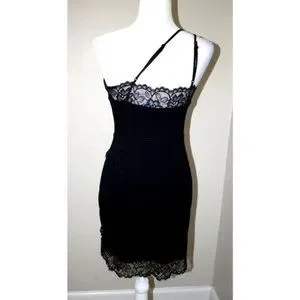 Sexy sultry Intimately Free People bodycon figure flaunting lace trimmed little black LBD slip dress