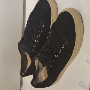 Suede (black) and off-white soles.