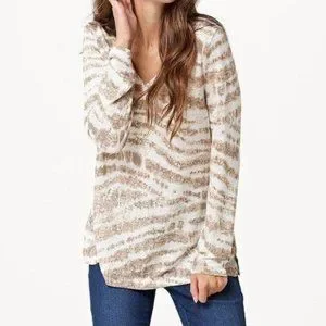 Belle by Kim Gravel Batik Stripe Sweater Slub Top