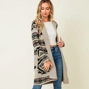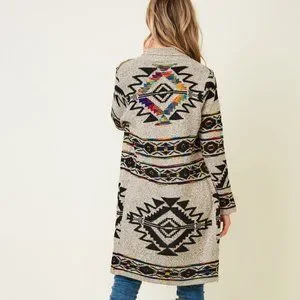 new ON BLUE SWEATER CARDIGAN WRAP boho western AZTEC TRIBAL TAUPE jacquard SM-3X