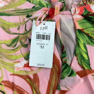 J. Jill Womens Tunic Top Pink Floral 3/4 Sleeve Keyhole Neck Tie Side Slit M $99