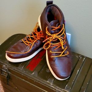 To many shoes, these were to narrow, selling so Husband can buy more with out guilt. Nice looking ankle boot, no blemishes, soles show no wear.
