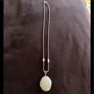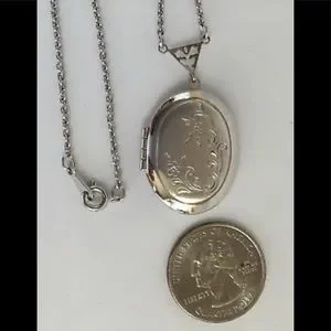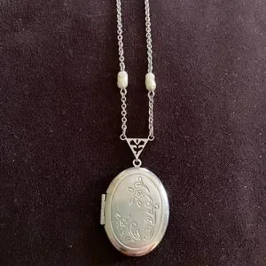 Beautiful, vintage, Avon signed, oval shaped, silver tone, locket w/ a floral design, on a 22” silver tone chain. In excellent condition, from a healthy, smoke free home. Ships in 1-2 business days.