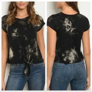 Black Tie Dye, Tie Front Tee. Super cute summer staple. Short sleeves. Tie front. Cropped styling. 94 rayon 6 spandex. New boutique item.