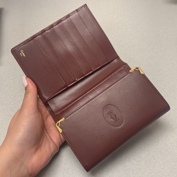 Sold❌AUTHENTIC MUST DE CARTIER TRI-FOLD FRENCH STYLE WALLET BORDEAUX LEATHER