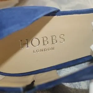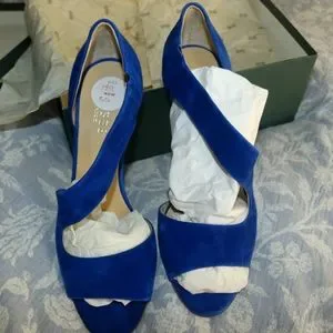 Lovely elegant suede sandals with a lower heel approximately 2.75 to 3 inches tall. In excellent new condition in box. US 10 UK 8 EU 41. I'd say that these run slightly smaller as they wouldn't fit my wife who usually wears a US 10. Genuine suede in a rich blue colour.