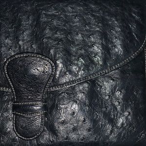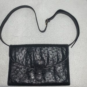 VTG 80’s-90's RARE Black Ostrich Leather convertible clutch to shoulder bag. Italian made purchased at Saks Fifth Avenue