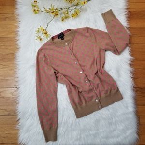 LANDS' END Cardigan Color Tan With Pink, SIZE S..