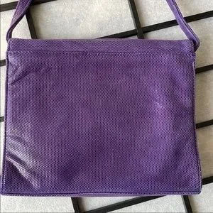 Good condition. Minimal wear. Crossbody feels like suede. Not tagged as, so assuming fabric. Shimmer/shine to fabric. Removable crossbody strap to use bag as clutch. Strap at its shortest, approx 25”. Leather wallet. Bill/Id holder. 3 cc slots. Zippered pocket. Smoke/pet free home. Pic measurements approx.