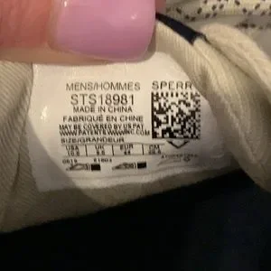 Men’s 10.5 Sperry Top-Sider Canvas off white sneakers. GUC. Most of the marks would probably come off with a good cleaning. Husband liked them but has other shoes he wears more.