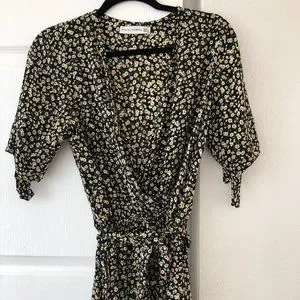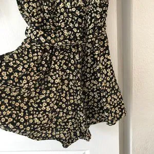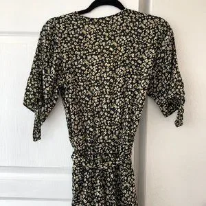 Faithfull The Brand Black & Cream Floral Short Sleeve Play Suit Romper Size 8