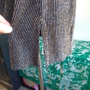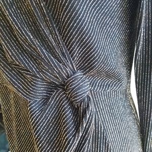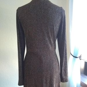 Brand Three Pink Hearts, size junior XL, adult L. black dress with gold and silver glittery stripes, very stretchy fabric, see tag photo for details