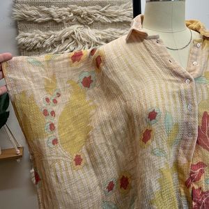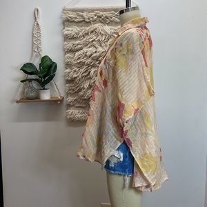 Free People Oversized Bohemian Tropical Lightweight Button Down Shirt Blouse